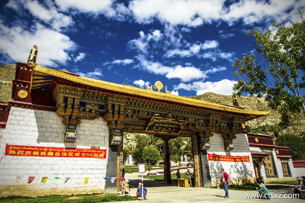 明永樂十七年(1419),宗喀巴弟子絳欽卻杰興建,成于宣德九年(1434)。后絳欽卻杰應召赴北京,受封大慈法王。回藏后將欽賜經像等珍藏于寺內,至今仍存。寺內有結巴、麥巴、阿巴三札倉(經院)。其全盛期寺中有僧8000余,規模略次于哲蚌寺。