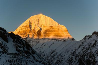 只是到了枯水季節水勢就較小了。 更奇妙的是大佛兩邊各一男女護法,莊嚴神圣,100多米高的女護法貝德拉姆頭戴面紗,腰系絲帶手持佛珠,惟妙惟俏,栩栩如生。觀音、如來、喇嘛頌經、神鷹獻寶、神龜叫天、酥油燈等天然形成的佛教景觀十多處。經常有人到這來看看自己有不有佛緣,有佛緣的人就能看到這種抽象化的佛像。“卡定”藏語是“天上人間的意思”,卡定神山由來至此。